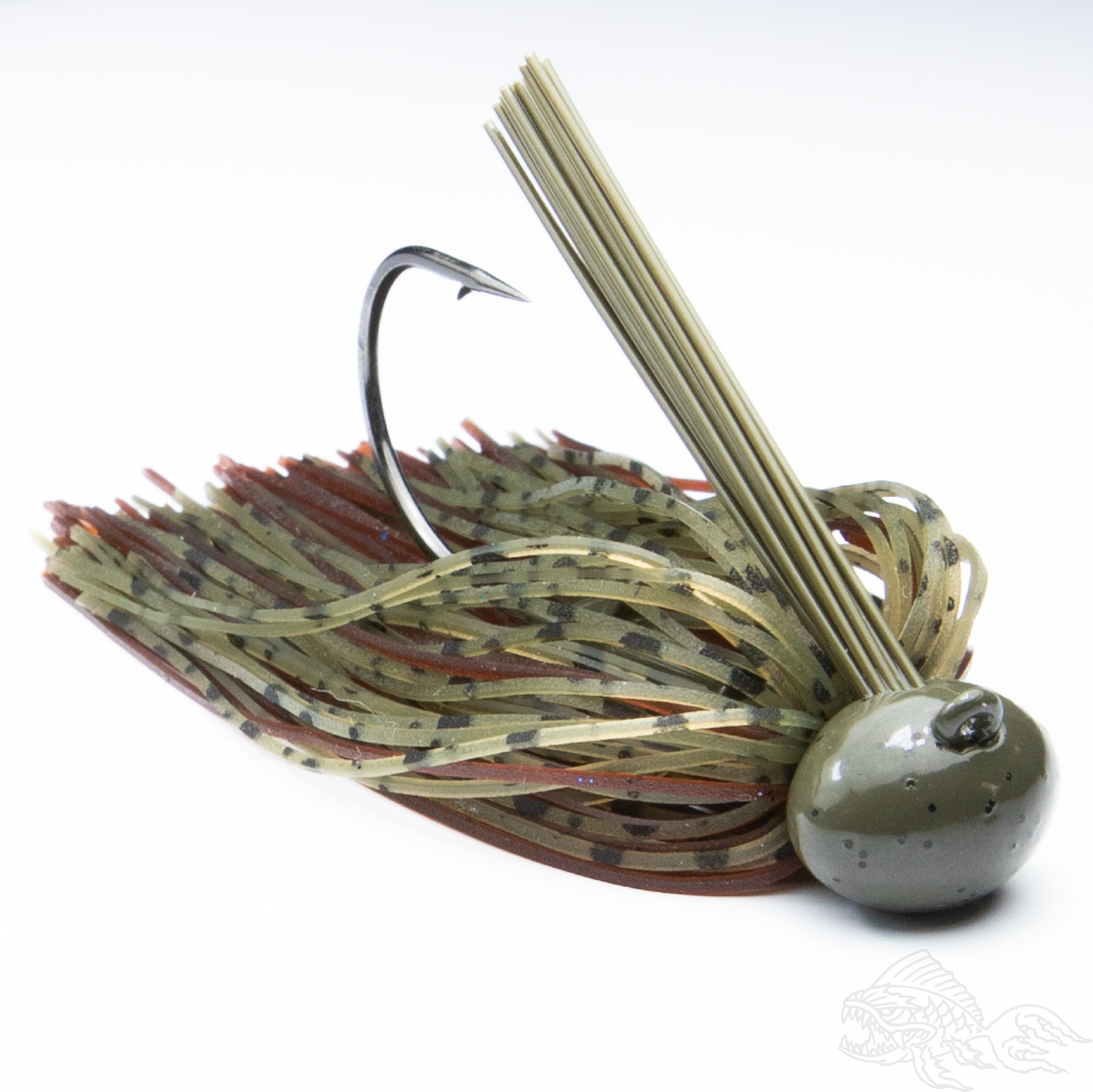 Designed with a 97% tungsten, 3% nickel compact football head, Premium wire tied silicon skirts, and an ultrasharp Mustad hook. You won't find a higher Quality football jig on the market!